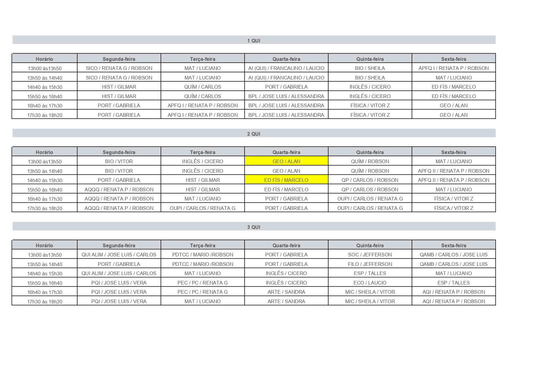 10h40 às 12h40 | 09h30 às 13h30 | – | 09h30 às 14h30 | 09h30 às 12h30 / 19h30 às 22h30 |