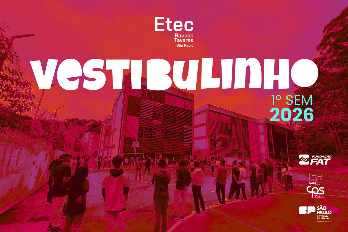 A Etec Raposo Tavares informa que o processo seletivo do Vestibulinho para o 1º semestre de 2026 já está aberto! Essa é a sua oportunidade de ingressar em uma formação técnica gratuita, de qualidade e alinhada às demandas do mercado de trabalho.