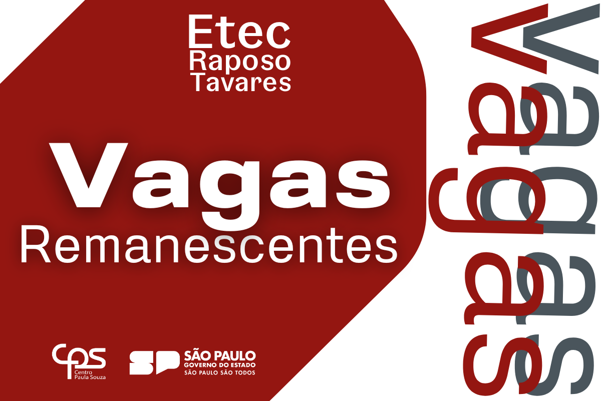 A Etec Raposo Tavares anuncia a abertura do processo seletivo para o preenchimento de Vagas Remanescentes destinadas ao primeiro semestre de 2026. As inscrições são gratuitas e devem ser realizadas presencialmente na secretaria da unidade.